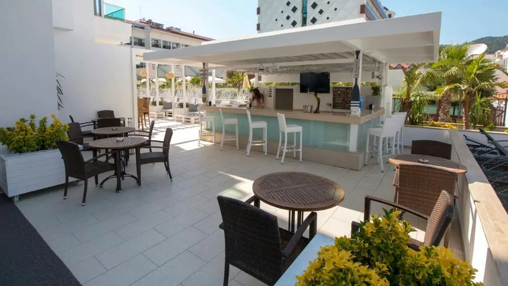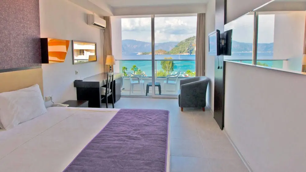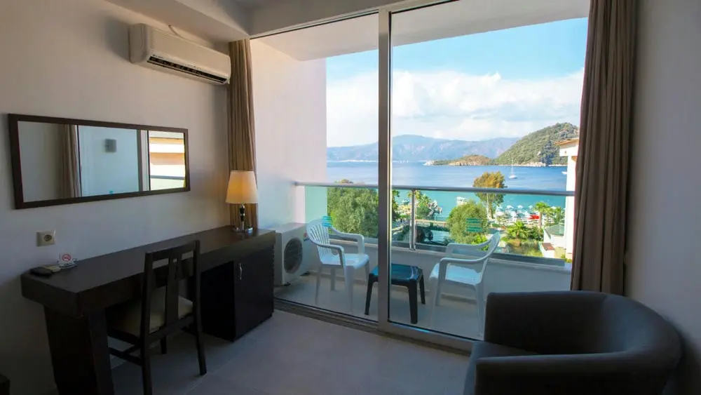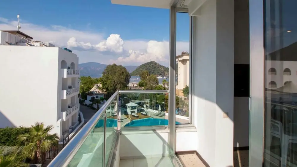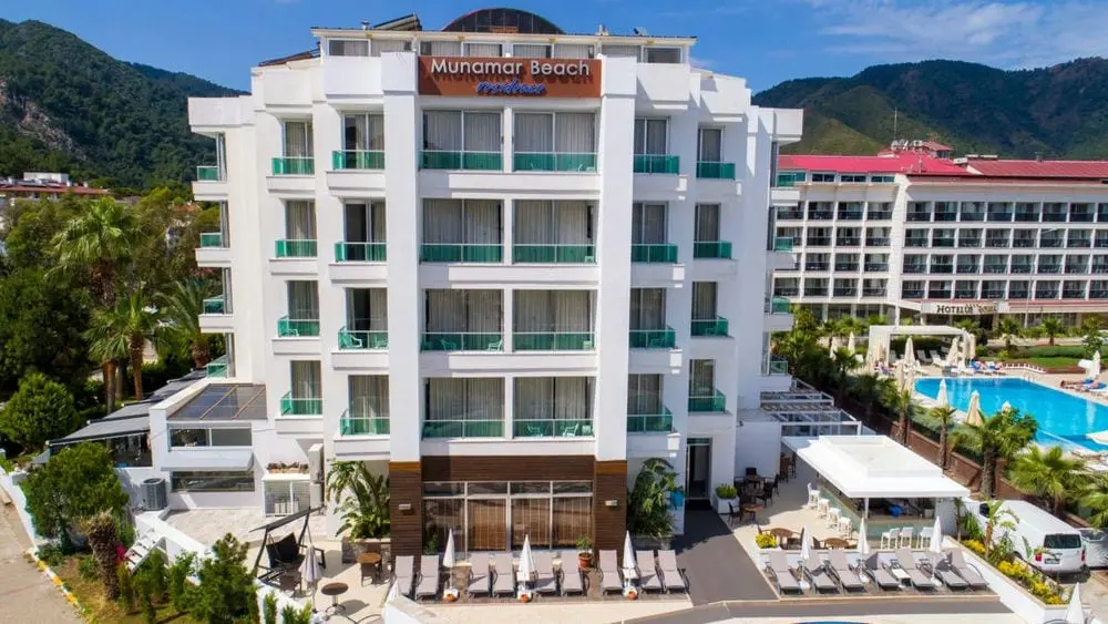 В 100 км от аэропорта г. Даламан, в 8 км от центра г. Мармарис, на берегу моря.