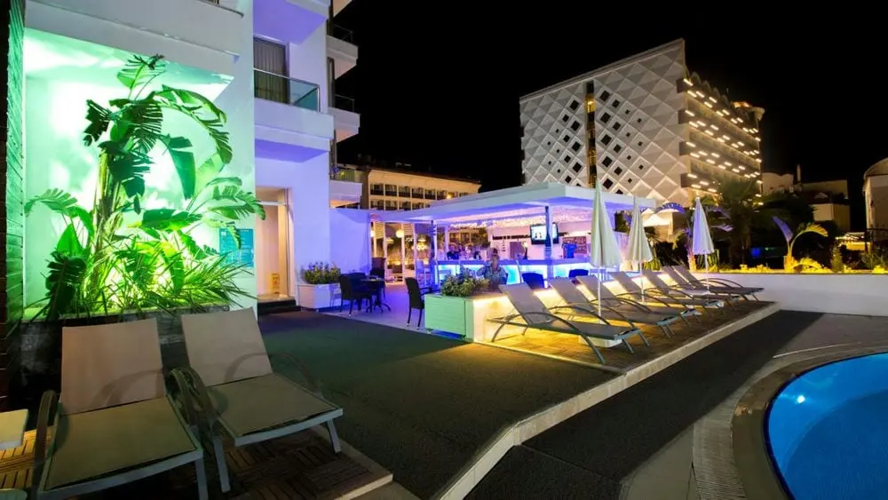 - Открытый бассейн (у бассейна зонтики, шезлонги, матрасы, полотенца: бесплатно)