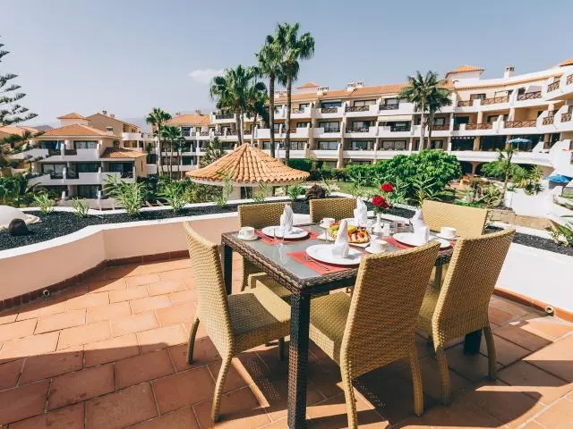 Расположение: в тихом жилом районе на юге острова, в 100 м от океана и недалеко от клуба Golf del Sur, одно из полей которого имеет 27 лунок. Расстояние до аэропорта Тенерифе Южный составляет всего 4км.