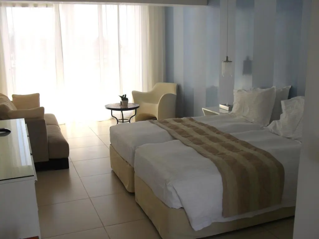 в 45 км от аэропорта г. Ларнака, в тихой части г. Айя-Напа, в 800 м от центра города, в 100 м от пляжа.