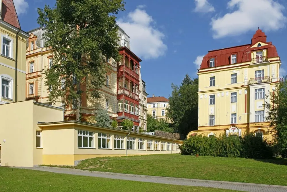 вид на ул. Карловарска или на отель Центральные Лазни.