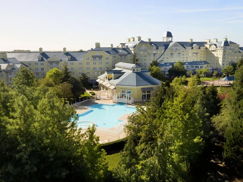Это крупнейший отель в парке Disneyland и один из самых больших отелей в Западной Европе. В интерьере этого особняка в стиле Новой Англии 20-х годов доминирует морская тема. Элегантное здание отеля из белого камня с башенками и верандами построено в стиле морского курорта Новой Англии начала века, с прогулочными дорожками вокруг озера. Дизайн отеля и царящая в нем атмосфера создают ощущение отдыха на курортах морского побережья.