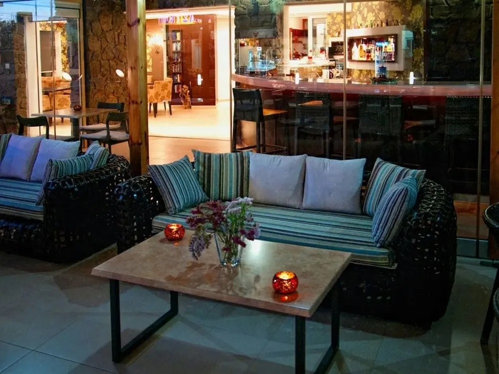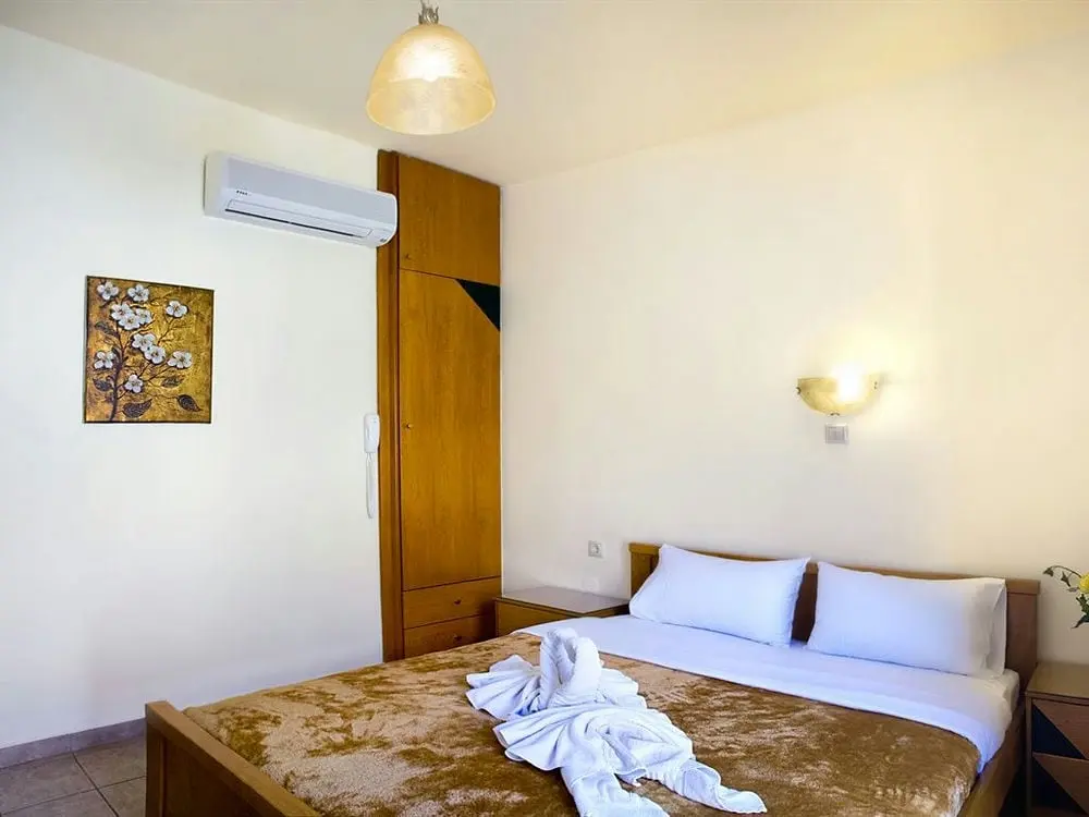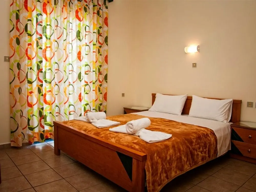 Северное побережье острова, центр курортного городка Георгиуполис, в 45 км от аэропорта Ханья, в 40 км от г. Ханья, в 100 км от г. Ираклион, в 25 км от г. Ретимно. Двухэтажное здание.