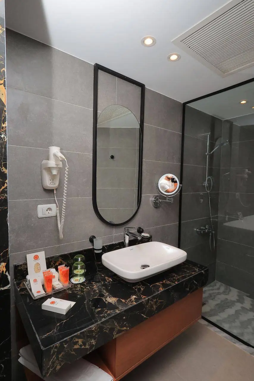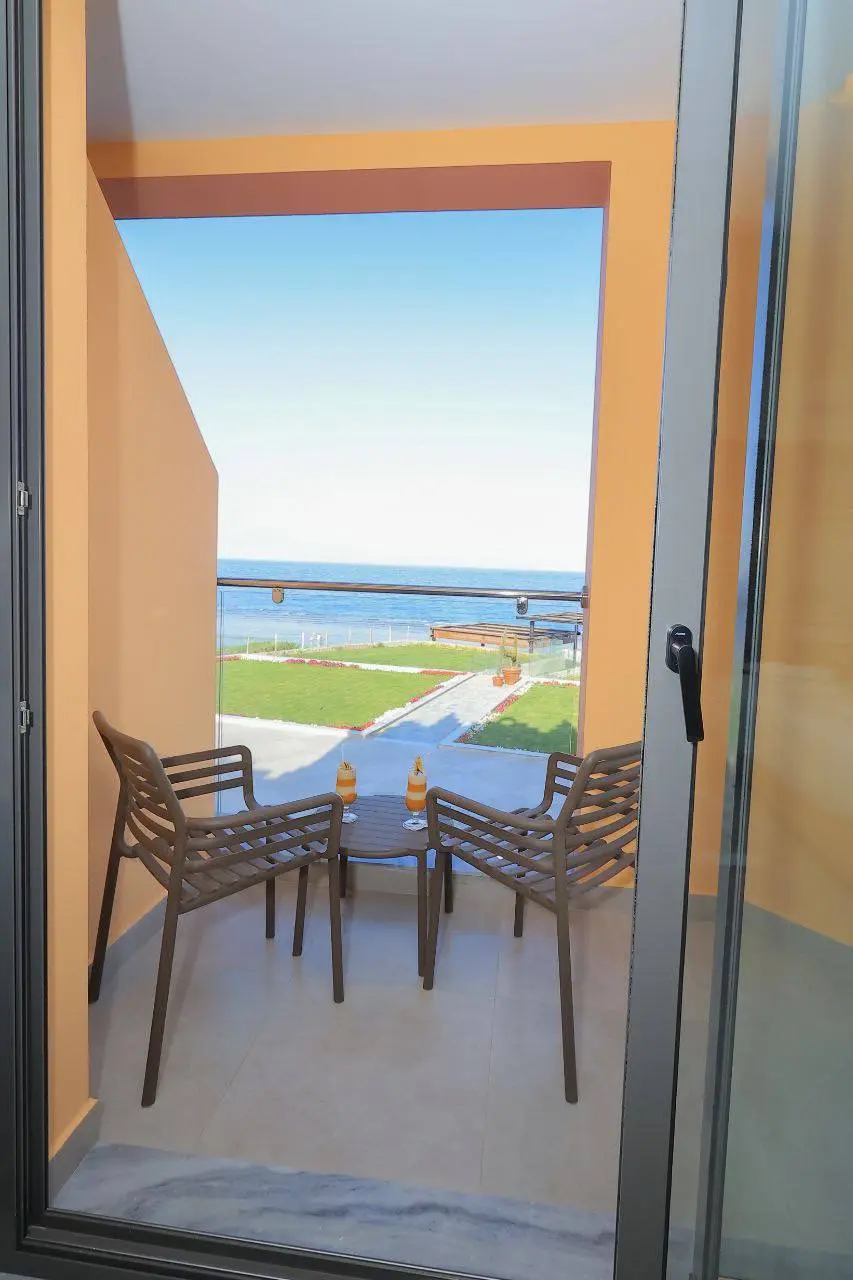 Deluxe Seafront Room с видом на море (Вместимость номера: 2/2+1 человек; площадь номера: 35-45 м2 с балконом; расположение: здание у моря, 2 этаж; вид: вид на море; одноместный номер с двуспальной кроватью или 2-мя односпальными (1-комнатная!) кроватями; дополнительная кровать: 1 стандартная кровать; ванная комната: душ, туалет)