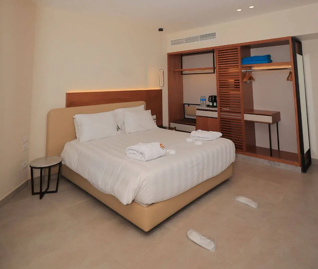Family 2 bedrooms (pool/sea side view, макс 3+2 чел., 2 спальни (одна с двуспальной кроватью, другая (без окна, с дверью, с раздельными кроватями), балкон, 60 м2), расположены в главном корпусе.