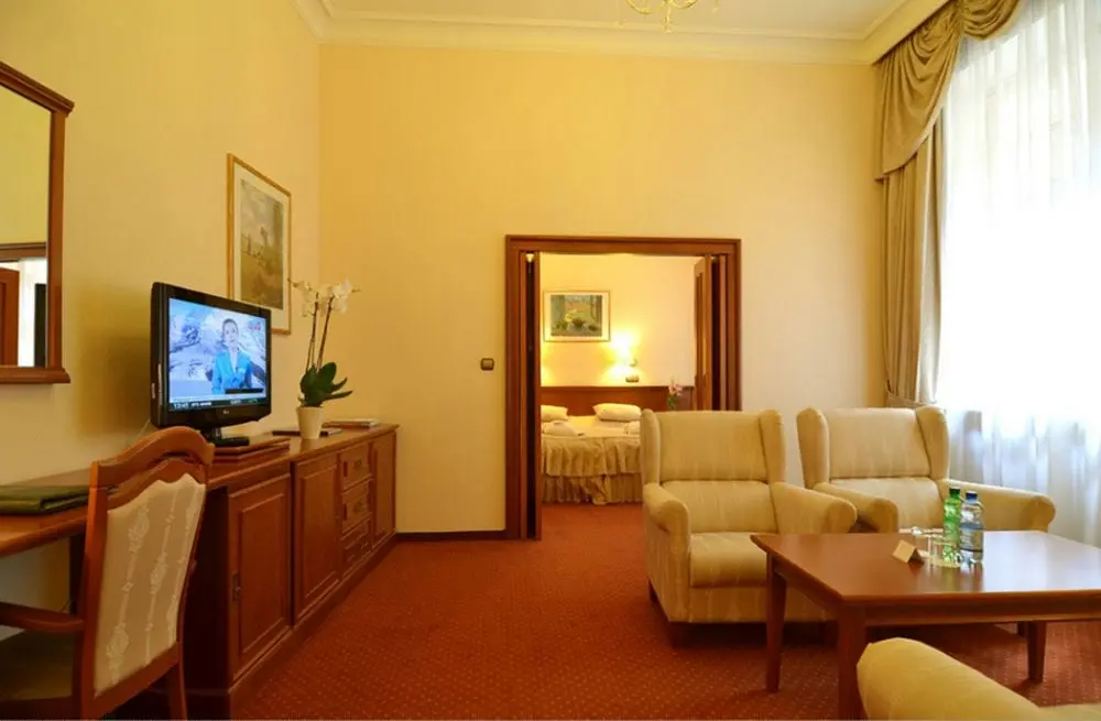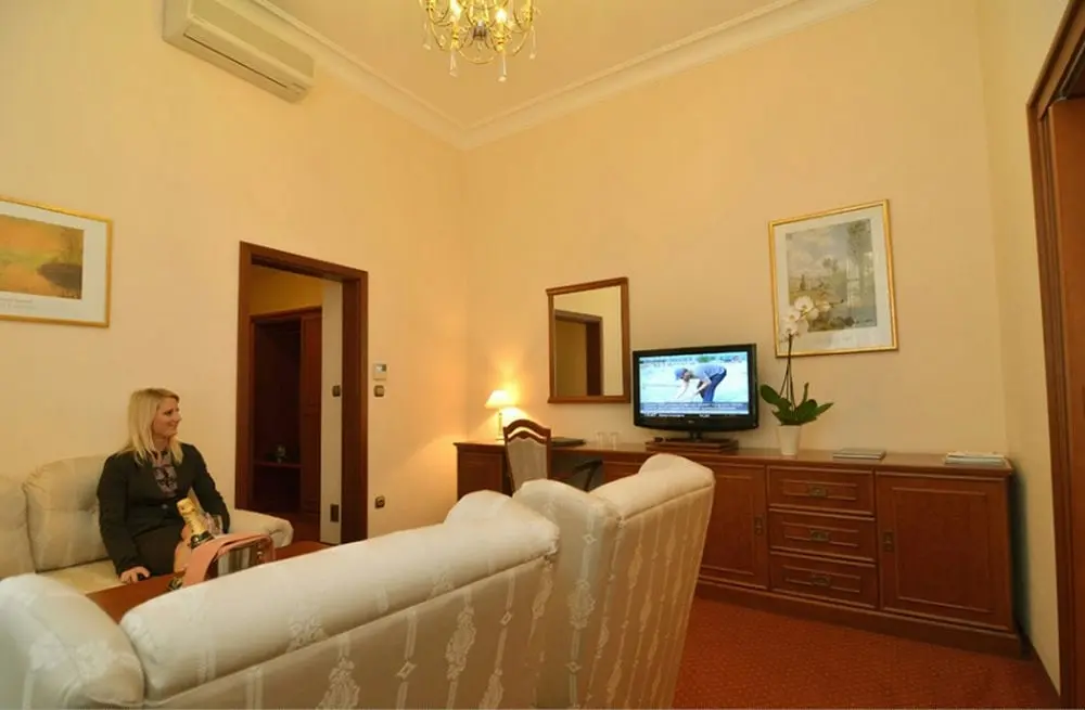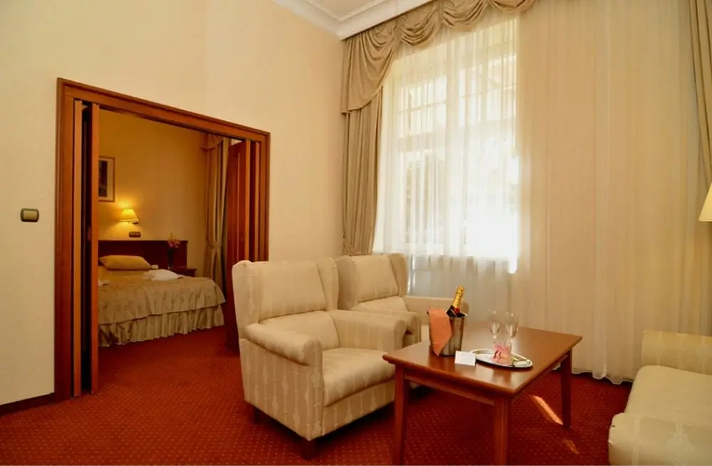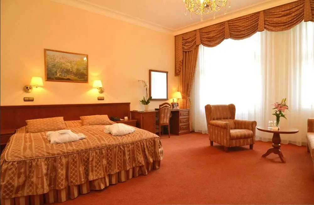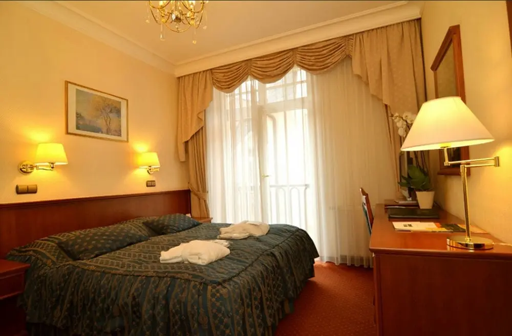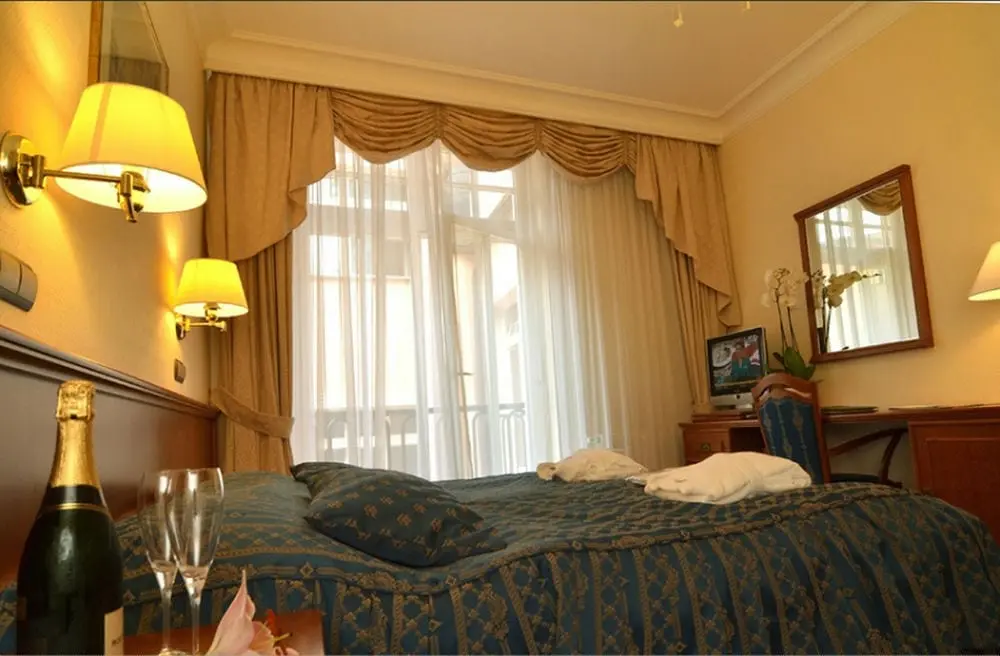 - Superior Park - размер номера: 30 м2, кровать размера "Deluxe King", некоторые с балконом, вид на парк, ванная комната с ванной. Двухместные номера с видом на «Парк» (на главной площади театра), оснащенные всеми удобствами: кондиционер, ванная комната, туалет, фен, халат, мини-бар, спутниковое телевидение с российскими программами, радио, доступ в Интернет, телефон.