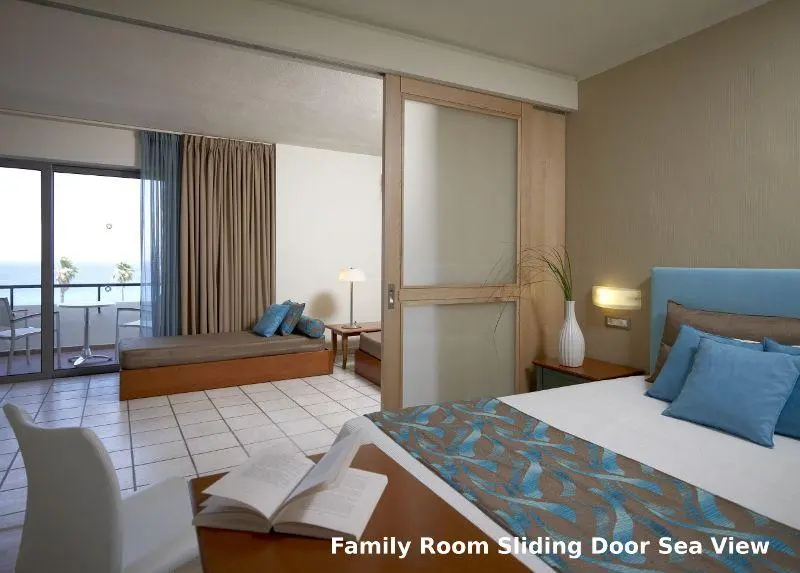 Family Sliding Door Sea View (макс. 4 чел., 36 кв.м.) вид на море, спальня и гостиная, разделенные раздвижной дверью