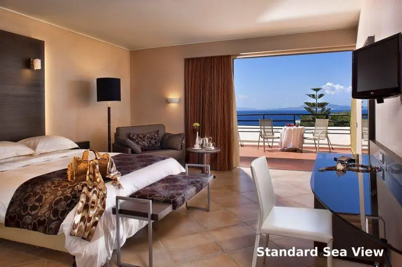 Junior Suite Sea View (макс. 3 или 2+2 чел., 34 кв.м.) вид на море, однокомнатный номер — спальня и гостиная зона