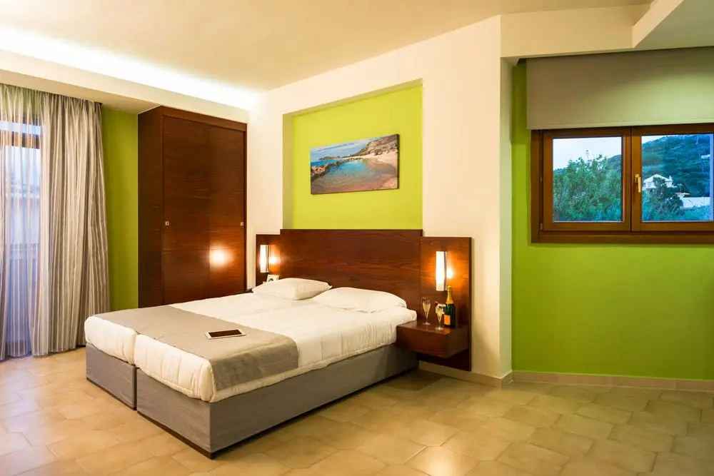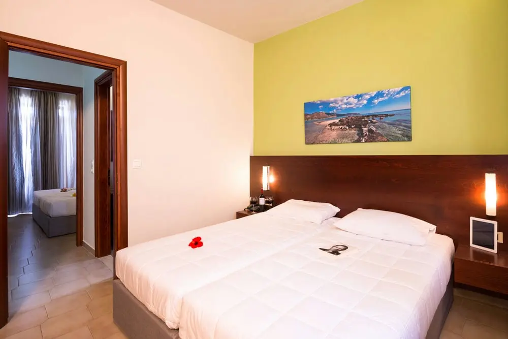 Двухкомнатный номер люкс, оформленные стильно и просто, оснащены зоной гостиной и столовой, а также раздельной спальней. Прекрасно подходят для небольшой семьи или пары. Гостиная оснащена диваном-кроватью, обеденным столом и стульями. В оборудование кухонного уголка входит все необходимое для самостоятельного приготовления пищи: холодильник, электрический чайник, микроволновая печь, сковороды, полный набор кухонных принадлежностей. Индивидуальный балкон выходит на бассейн и сад. Кроме того, предусмотрены телевизор, кондиционер,Wi-Fi, фен.