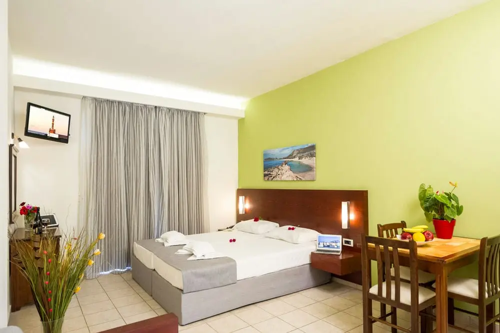 Просторные и светлые студии, с чьих балконов Вы будете любоваться поразительным видом на чистое небо, отраженное в согретом солнцем Средиземном море. Идеально подходят для отдыха вдвоем. В оснащение кухонного уголка входит все необходимое для самостоятельного приготовления пищи: холодильник, электрический чайник, микроволновая печь, сковороды, полный набор кухонных принадлежностей, обеденный стол и стулья. Кроме того, предусмотрены телевизор, кондиционер,Wi-Fi, фен.