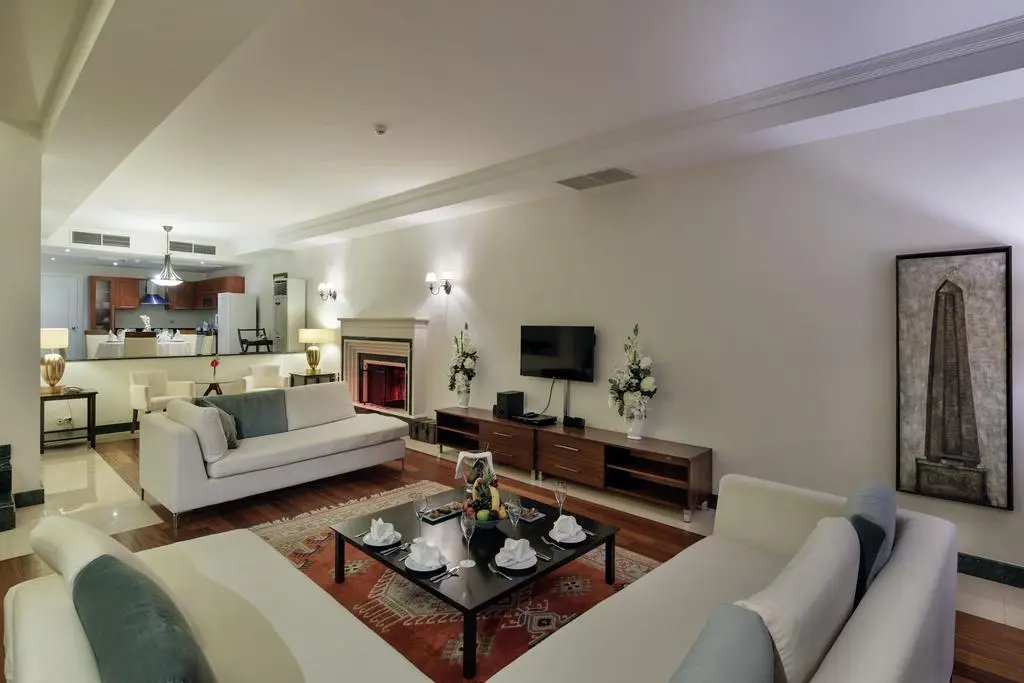 4 трехкомнатных King suite (2 спальни c дверью, 2 ванные комнаты, гостиная с мягкой мебелью, макс. 4 чел., 128 м2).