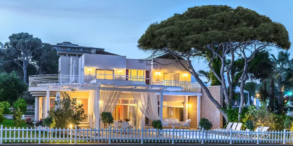 в 35 км от аэропорта,в 40 км от центра г. Анталья, в 4 км от поселка Белек, на берегу моря.