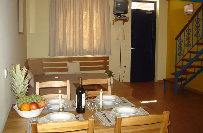 Все апартаменты расположены на втором этаже. В их дизайне присутствует лофт с двуспальной кроватью, выдержанный в традиционном родосском стиле. В апартаментах нет разделяющей стены, и общая площадь номера включает и гостиную с 2 диван-кроватями и кухню. С просторного балкона гости могут наслаждаться открывающимся захватывающим видом на море. Оба уровня соединяет лестница.