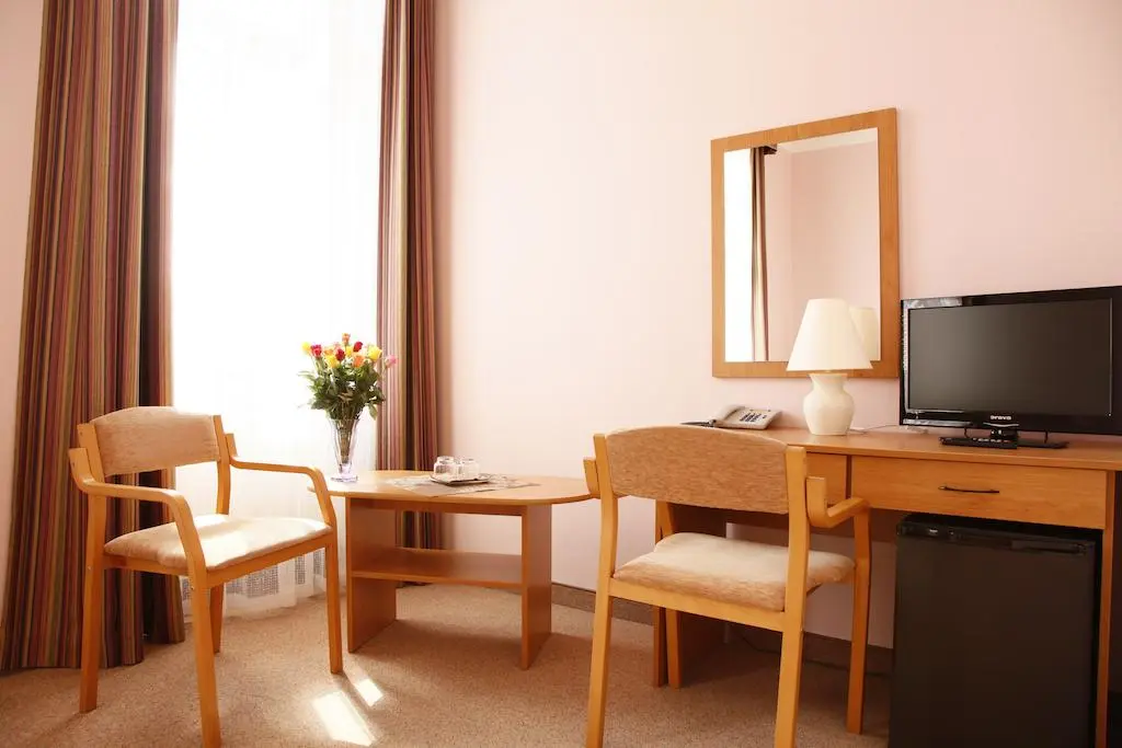 В каждом номере: ванная комната с ванной или душевой кабиной, телевизор, телефон, сейф, холодильник, письменный стол, зона отдыха.