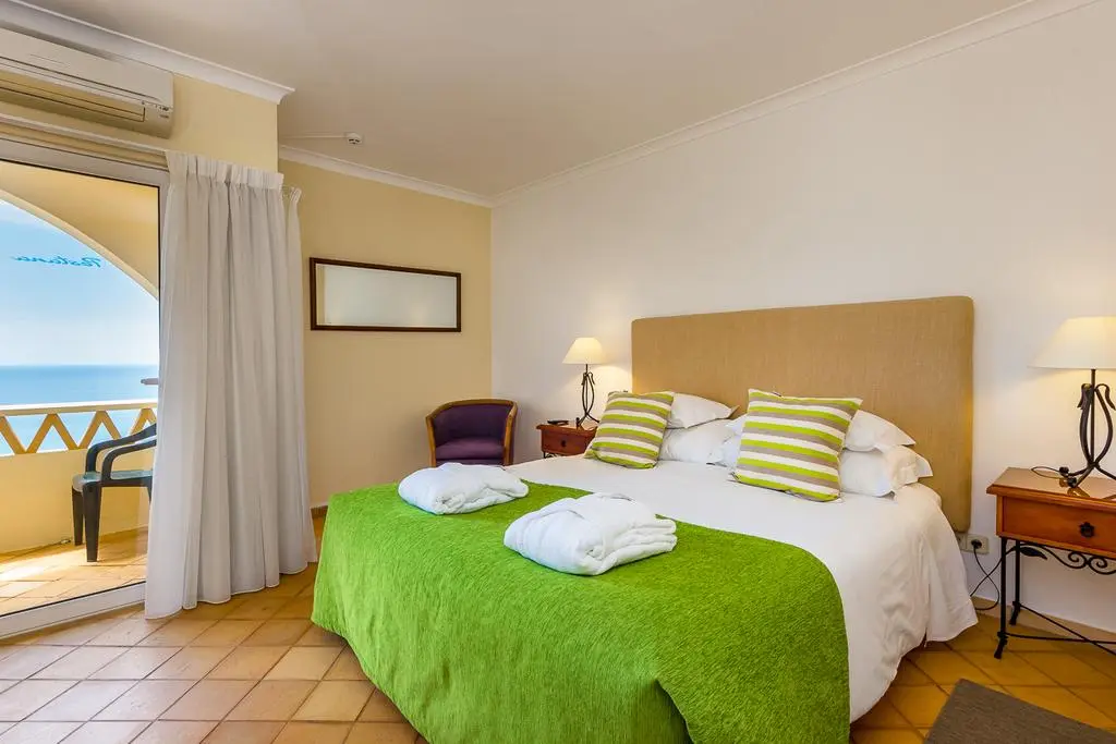 Спальни комплекса Pestana Palm Gardens оформлены в теплых солнечных тонах. В каждом номере есть стеклянные раздвижные двери, за которыми находится сад и меблированное патио. Из некоторых номеров также открывается панорамный вид на море.