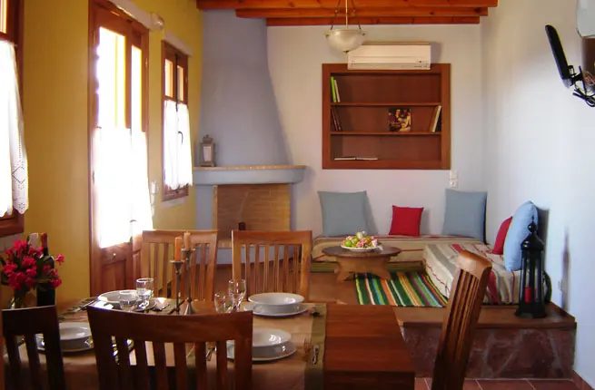 Сочетание традиционного стиля и современных удобств, полностью оборудованная кухня, две спальные комнаты, одна из которых расположена на мансарде, ванная комната с душем, туалет. Вторая спальная комната выполнена в традиционном стиле острова Родос с кроватью, расположенной на платформе. Традиционная гостиная комната с диван-кроватью. Прямой выход на веранду. Снаружи: сад, лаундж зона с двумя шезлонгами, пергола. Уборка и смена постельного белья – каждые четыре дня