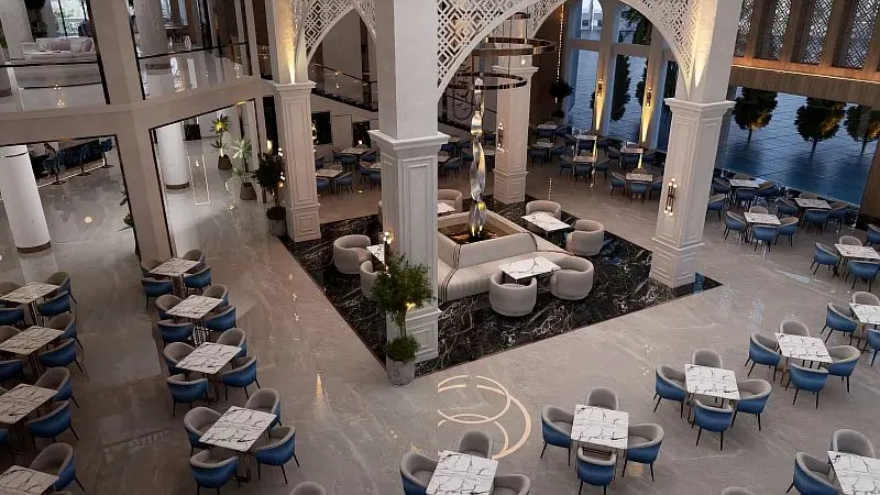 614 просторных номеров с потрясающим видом на море, 15 бассейнов, омолаживающий спа-салон и теннисные корты.