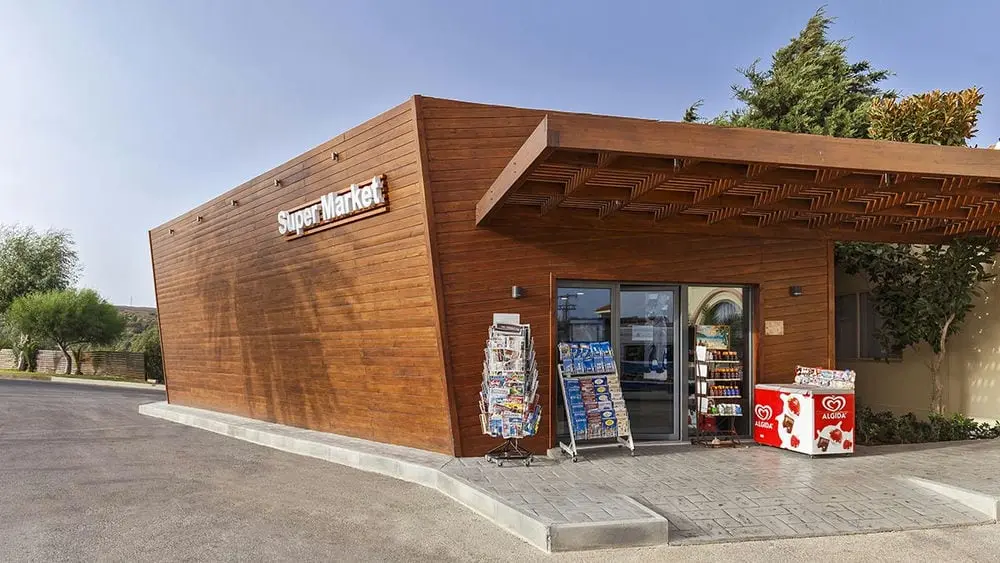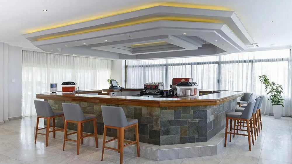 Часы обслуживания: 10.00 – 23.00 (Напитки местного производства: кофе, чай, безалкогольные напитки, пиво, красное и белое вино, длинные напитки с алкоголем местного производства водка, ром, джин, узо; горячие и холодные закуски, пироги с сыром, пицца, гамбургер, сэндвичи, кондитерские изделия, мороженое)