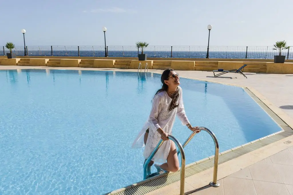 Открытый плавательный комплекс включает главный пресноводный бассейн с баром, расположенные в верхней части отеля, а также два бассейна с морской водой в нижней части территории, ближе к морю, почти на берегу залива Сент-Джорджа.