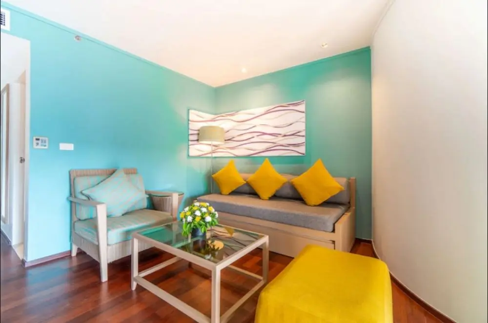 - 2-bedroom Pool View Suite with Terrace (62 кв.м., макс. 4+2(0-11) чел., 2 спальни, кровать King-size и 2 односпальные кровати, гостиная и обеденный стол, ванная комната, балкон/терраса, вид на бассейн)