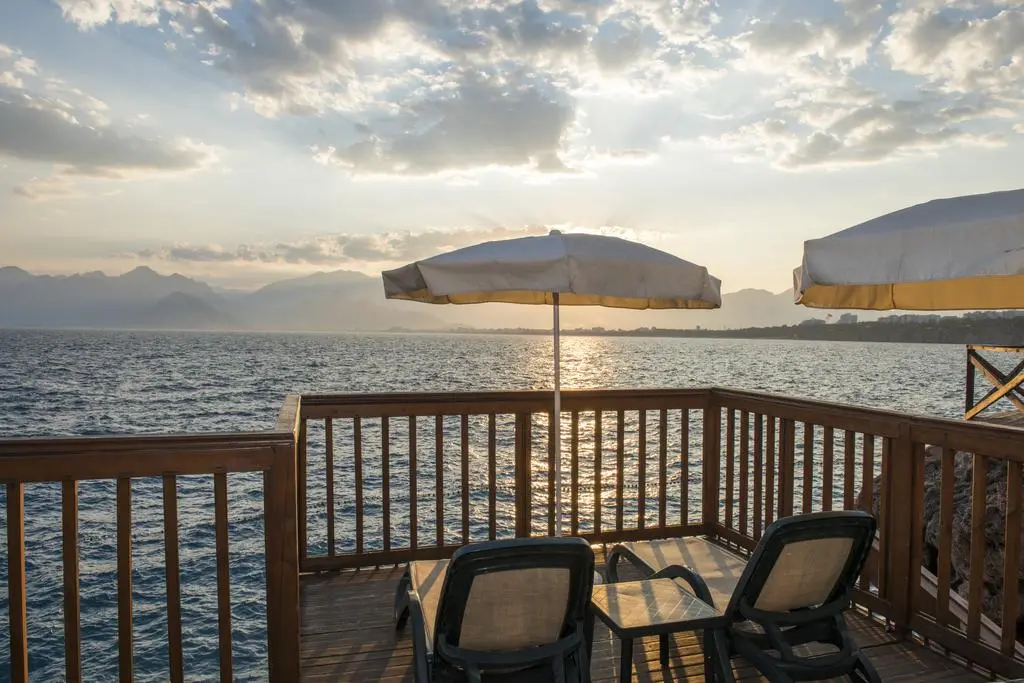 в 16 км от аэропорта, в центре г.Анталья, на высоком берегу моря.