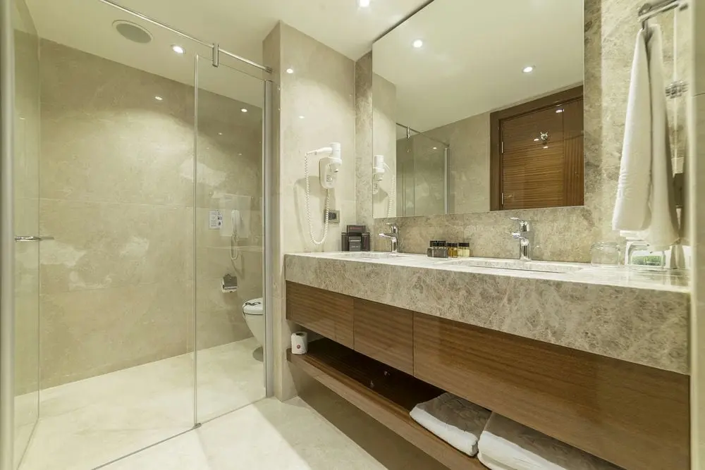 В номерах представлено: спутниковое ТВ, ванная комната с душевой кабиной, фен, мини-бар, прямой телефон, банные принадлежности, центральное кондиционирование, Wi-Fi, сейф, набор для приготовления чая/кофе, балкон.