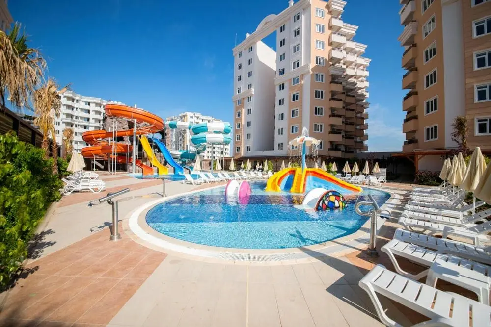 - Детский открытый бассейн, 4 водные горки