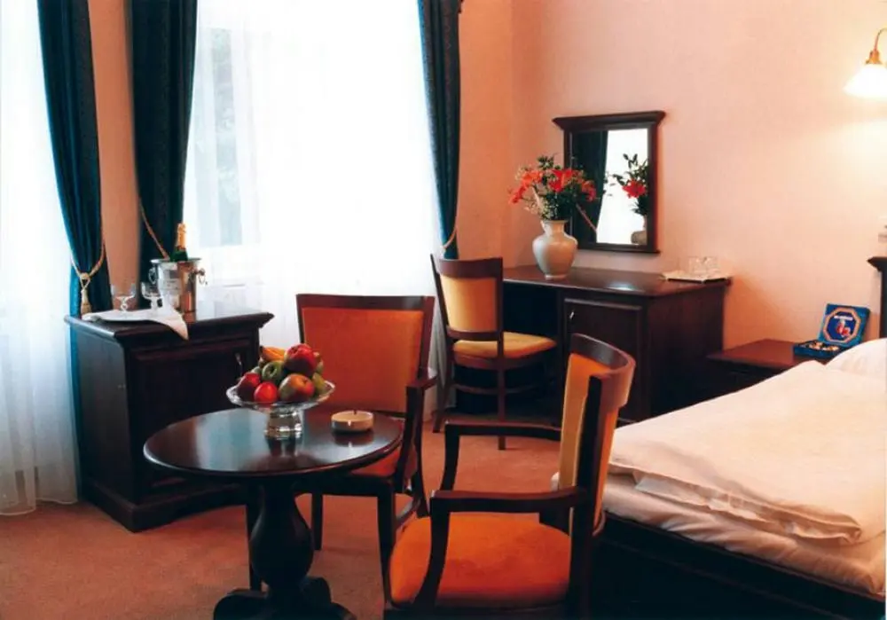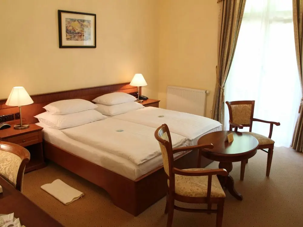 Типичное здание в стиле неоклассицизма, в котором кода-то располагалось курортное кафе „Шэнбрунн” (Schönbrunn), хранящее свою историю с 30-х годов двадцатого столетия. Курортные леса и роскошный парк, который окружает гостиницу, предлагают гостям уникальную среду для отдыха и прогулок, рекомендованных в качестве важной составляющей санаторно-курортного лечения, а до источников с минеральной водой всего 15 мин прогулки пешком. В отличие от крупных гостиничных комплексов, по домашнему семейная обстановка Паркотеля создает приятную атмосферу для отдыха клиентов с индивидуальным подходом к каждому гостю отеля.