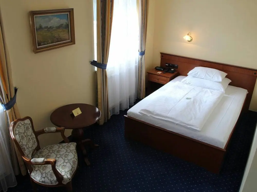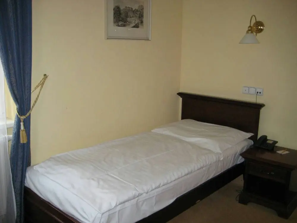 - Одноместный номер Стандарт Плюс - площадь номера около 15 м2 (+ прихожая 3 м2 + ванна 4 м2 = 22 м2)французская“ кровать (шириной 1,40 м), стандартное оборудование и обстановка