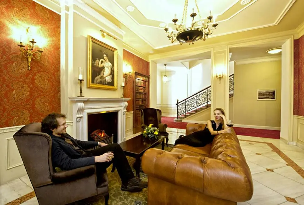 ванная комната или душ, туалет, биде в номерах высшей категории, телефон, телевизор с сателитными программами (2 русские программы) мини-бар, сейф, фен, халат. Подключение к интернету - бесплатно, возможность дополнительной кровати. Детские кроватки по запросу. Размещение с домашними животными 10 евро/день. Номера с видом на лес или сад с парком.