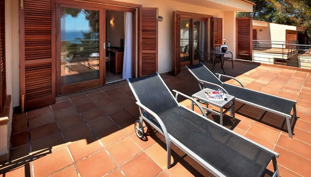 Garden Junior Suite (35м2) - бунгало состоят из спальни с двуспальной кроватью или двумя раздельными кроватями, террасы с лежаками, максимальное размещение 2 взрослых + ребенок или 3 взрослых;