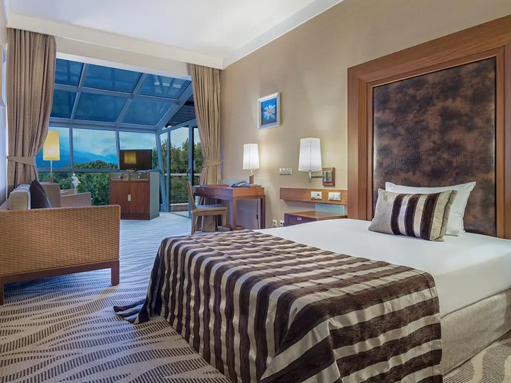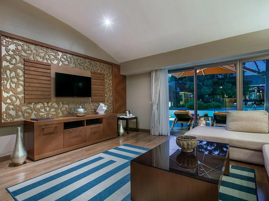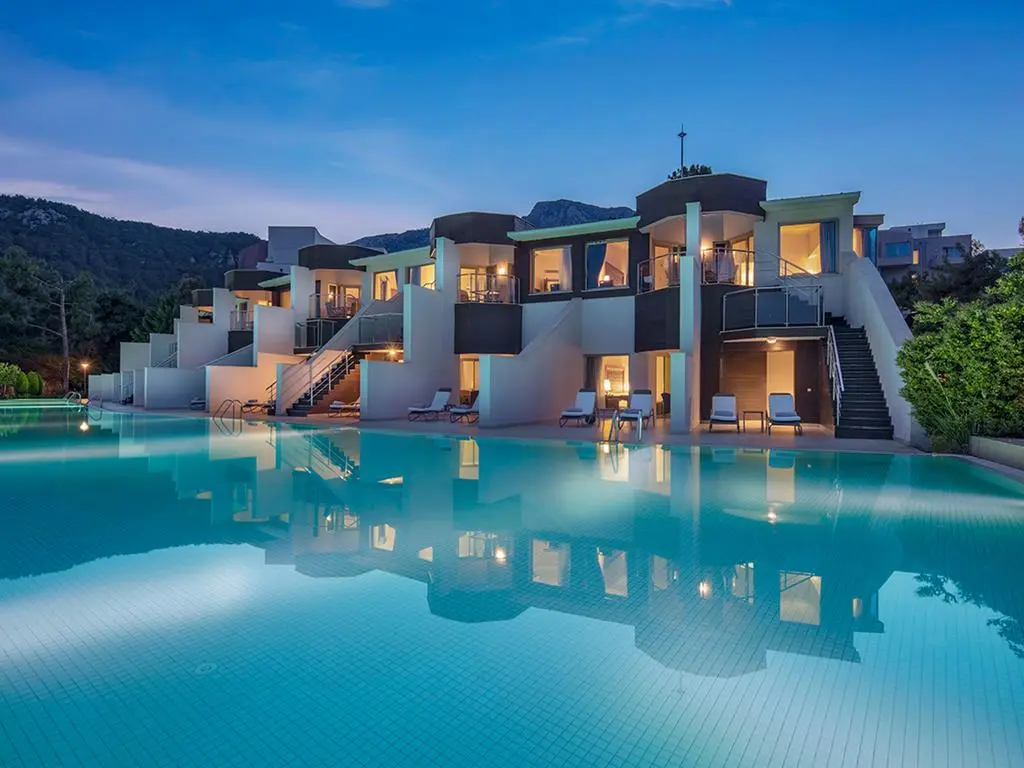 16 двухкомнатных deluxe suite (гостиная, спальня с дверью, 2 ванные (одна с душем), 2 ТВ, терраса с выходом к бассейну, макс. 3 чел., 63 м2, VIP-сервис);