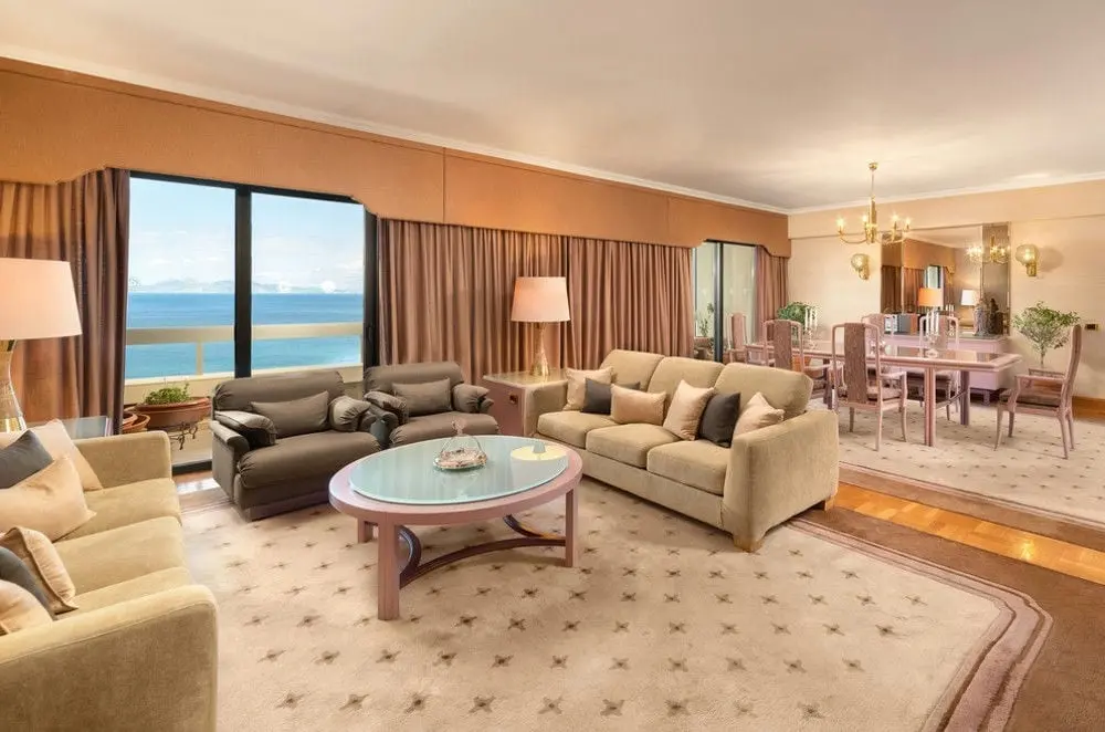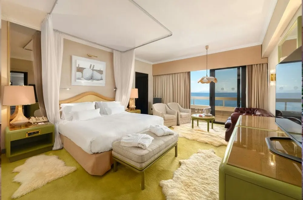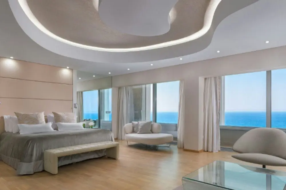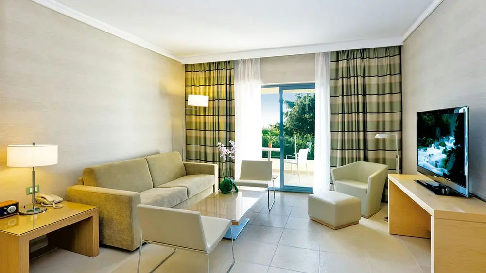 с видом на сад или море. Каждая сюита состоит из: спальной комнаты с en-suite ванной и биде, просторной гостиной с кухонным уголком, обеденным столом на 4 персоны, зоной отдыха с диван-кроватью или двумя кроватями, которая может дополнительно разместить еще 2 человек. Гости могут завтракать и ужинать в частном секторе с правом на предоставление эксклюзивных услуг, скидка 20% на посещение Тренажерного зала, Сауны, Jacuzzi, Хаммама, Теннисного корта, Fine Dining Ресторана 12 Nissia.