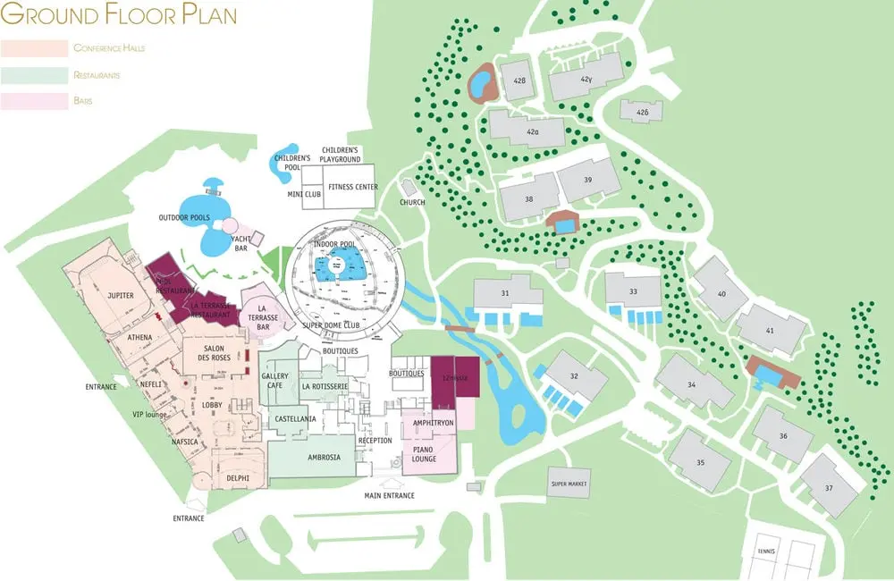 Бесплатно: • ТВ-комната • Анимация (дневные и вечерние развлечения) • Тематические вечера • Шоу и мюзиклы • Греческие вечера • Игры в бассейне