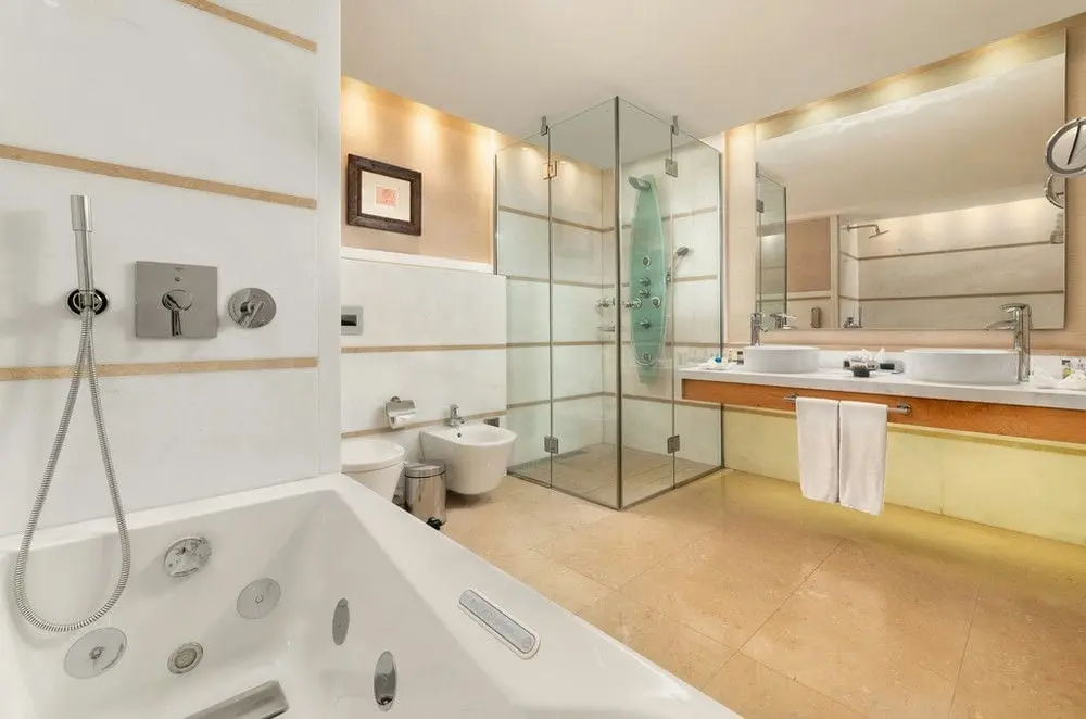 Бесплатно: Центральный кондиционер, индивидуально контролируемый, Подарок по приезду (бутылка вина), Спутниковое телевидение, Русские каналы, Фен, Сейф, Ванна с джакузи (биде), Балкон/Терраса (только терраса), Кафельная плитка, CD/DVD-проигрыватель (по запросу), Музыкальные каналы, Халаты, Тапочки, Кухонный уголок (полностью оборудованный), TVset (2), Банные принадлежности, Wi-Fi интернет