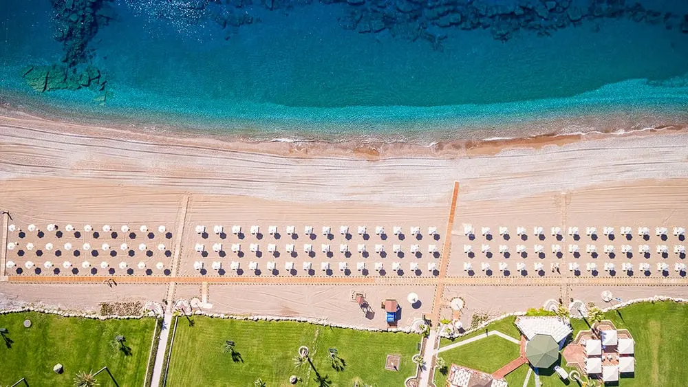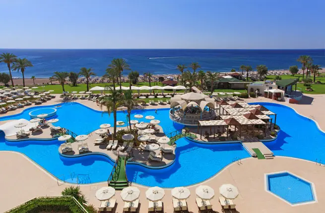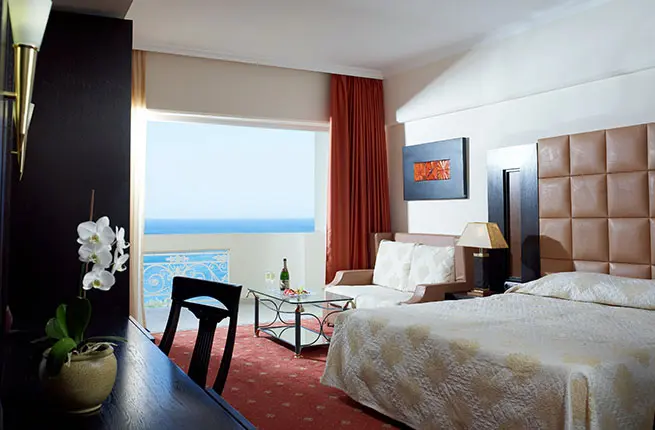 Роскошные люксы обеспечивают превосходное расположение в главном здании отеля, откуда открывается живописный вид на море с их просторных меблированных балконов (около 15 м2) В люксах есть входное лобби, большая гостиная, разделенная на две зоны отдыха, две отдельные мраморные ванные комнаты, спальня с двуспальной кроватью размера "queen-size", а также диван-кровать.