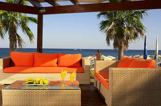 ежедневные бесплатные услуги, начиная со второго дня, включая канапе, Узо с греческими таппами, выбор свежих пирогов, клубнику с шоколадом с карамелью и игристым вином Cair,