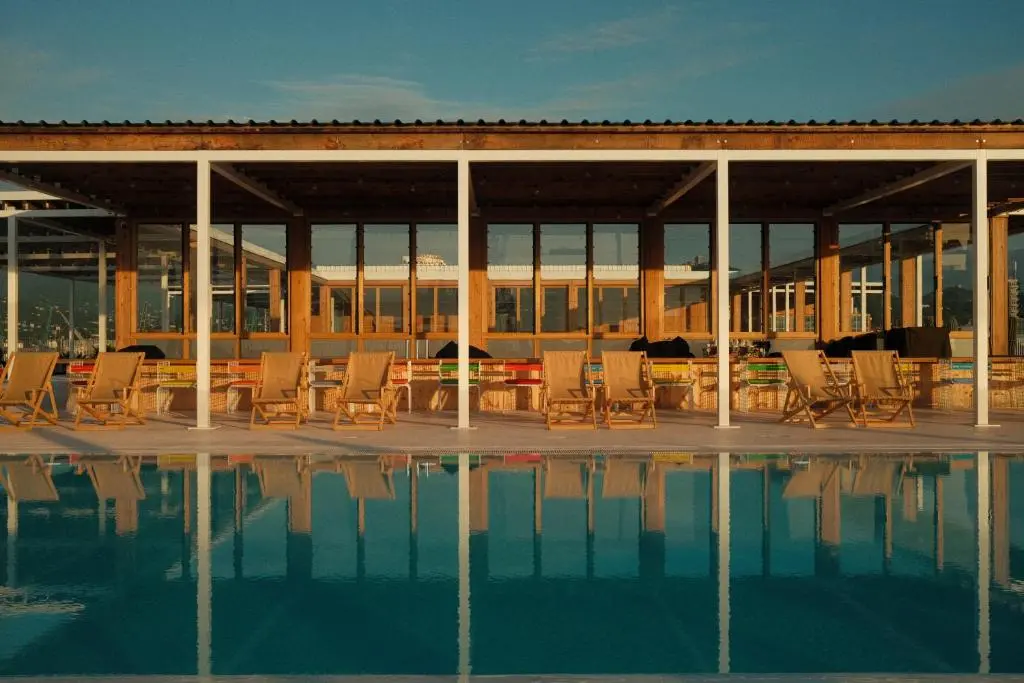 - Открытый бассейн с зоной для релаксации и видом на море