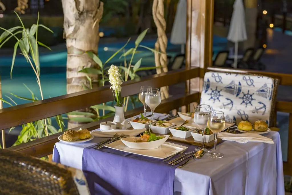 Оригинальный стиль в оформлении отеля, просторные номера.Территория небольшая, но очень зеленая. Широкий выбор развлечений для взрослых и детей. Рекомендуем для активного семейного отдыха.