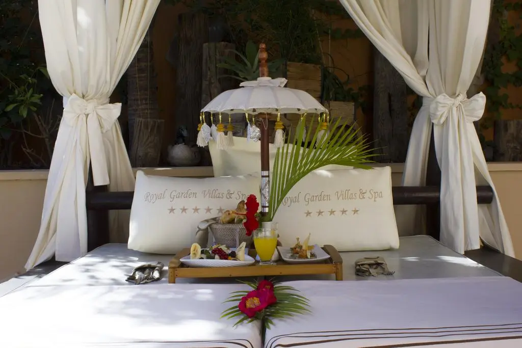 Прогуливаясь по узким тропинкам сада, наполненного запахами экзотических цветов, вы услышите журчание каменных фонтанов и успокаивающую музыку бамбуковых колокольчиков. Позвольте вашим ногам довести вас до нашего эксклюзивного спа, душевного ресторана и коктейльного бара под соломенной крышей рядом с изумительным панорамным бассейном общего пользования.