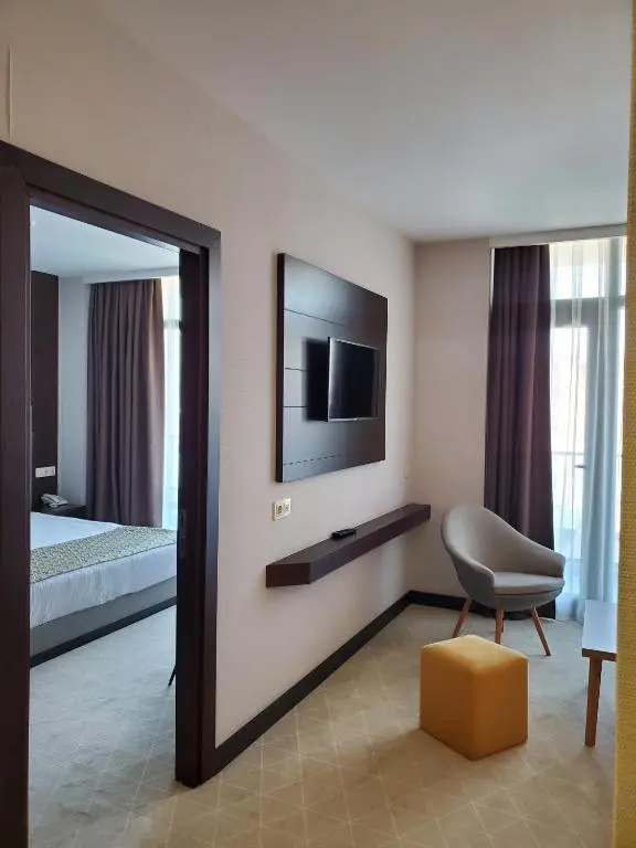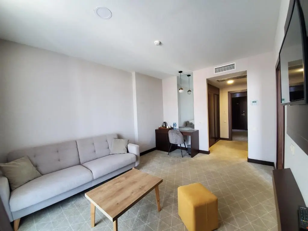 - Junior Suite (двуспальная кровать, диван; до 2 взрослых + ребенок, 30 м²)