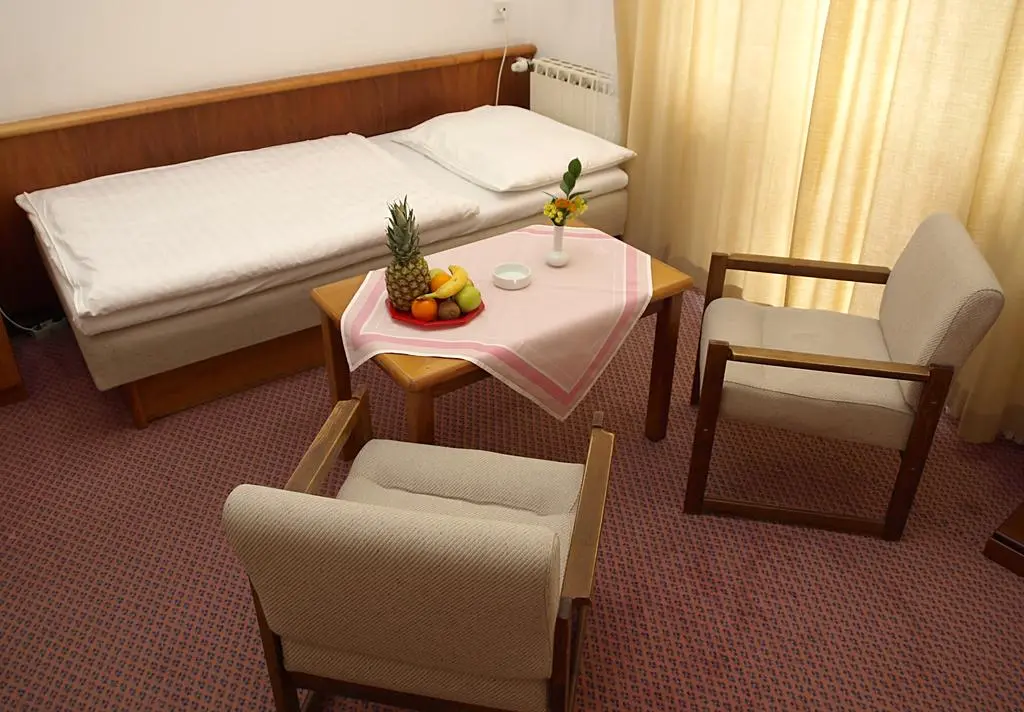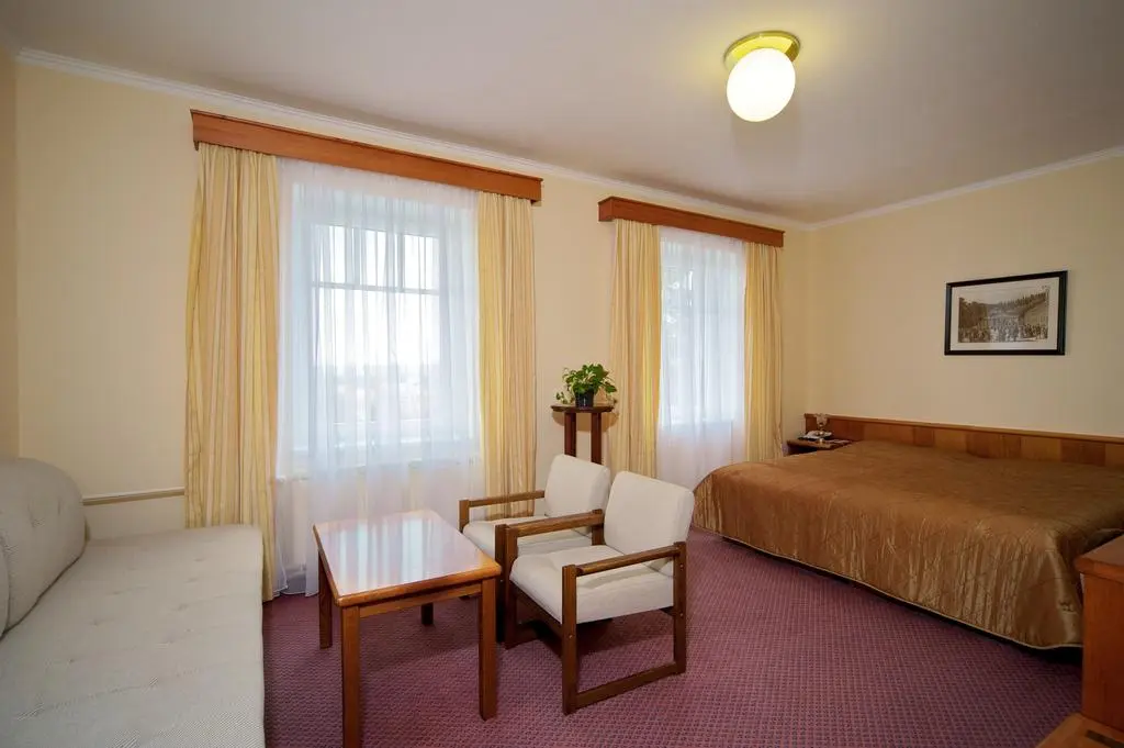 Во всех номерах: минибар, сейф, телефон, телевизор.радио, письм.стол, фен, c лечебным проживанием -халат, тапочки, большое полотенце.