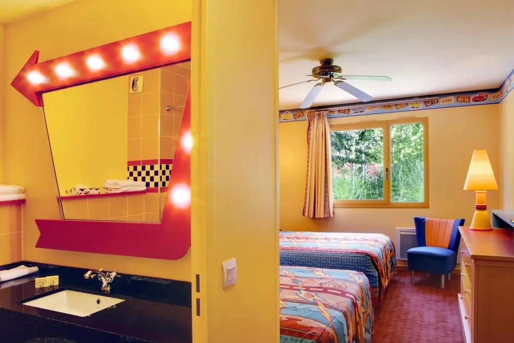 Отель является отличным вариантом для тех, кто желает сэкономить и хорошо отдохнуть после увлекательного дня, проведенного в парке. Для размещения гостей предусмотрены уютные номера, оформленные с использованием жизнерадостных мотивов в стиле Нью-Мексико и мультфильма «Тачки».