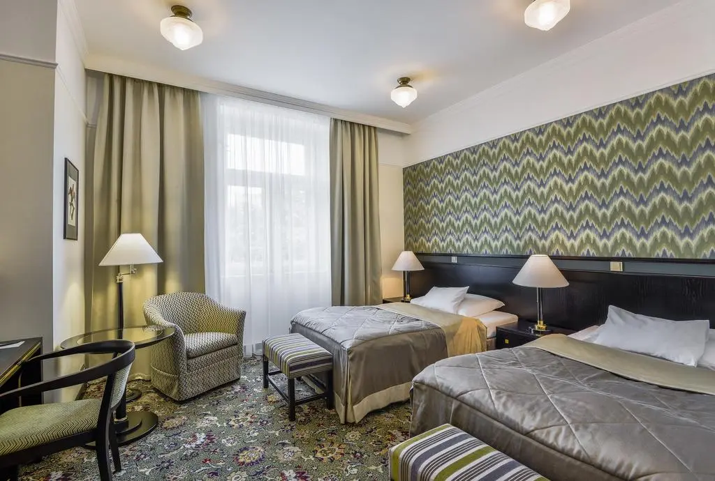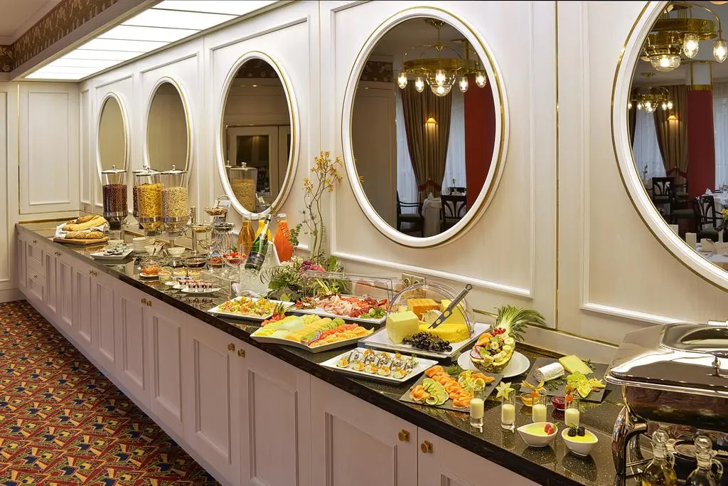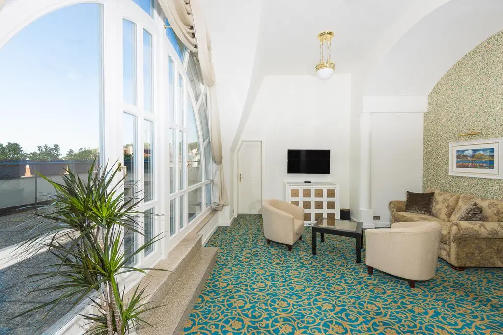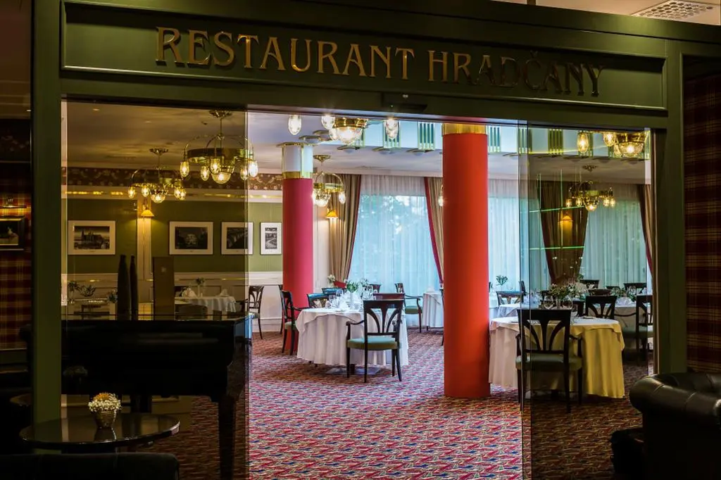 В уютном ресторане Hradčany готовят блюда чешской и интернациональной кухни. Внимательный персонал, вкусная еда и живая фортепианная музыка под открывающейся крышей создают в ресторане особую обстановку. Коктейли и другие напитки подаются в лобби-баре, оформленном в стиле ар-деко, и в англосаксонской библиотеке с камином, вековыми часами и сотнями книг.