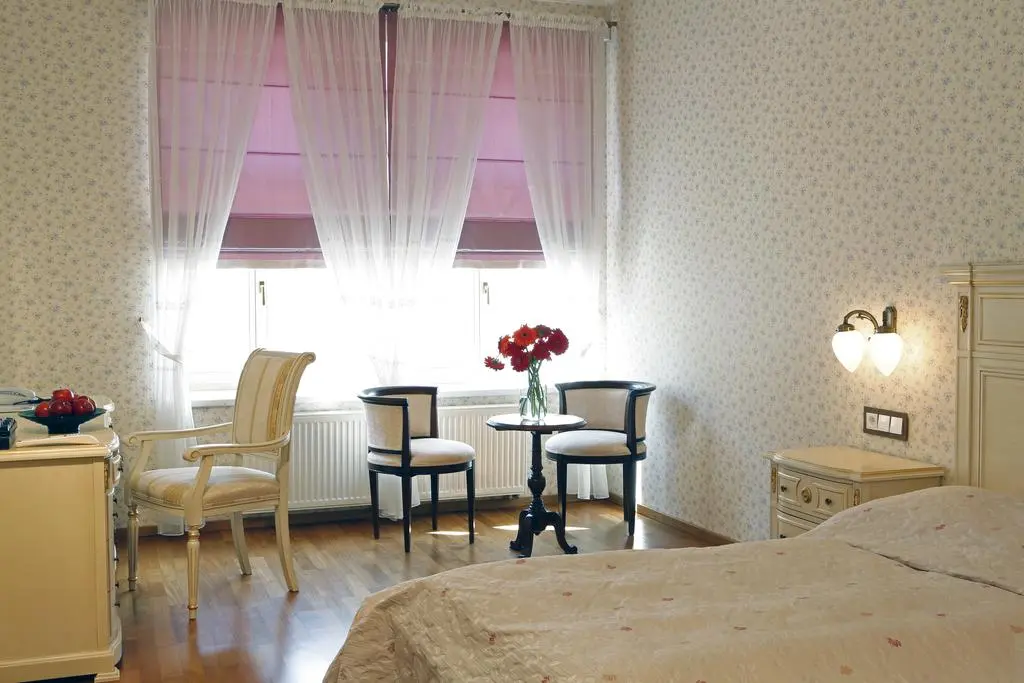 - Lux - площадь номера: 51 м2, номер в этой категории предлагает отдельную гостиную и спальню, есть возможность дополнительной кровати. В ванной комнате есть душ. В двух номерах присутствует балкон, в остальных трех нет.