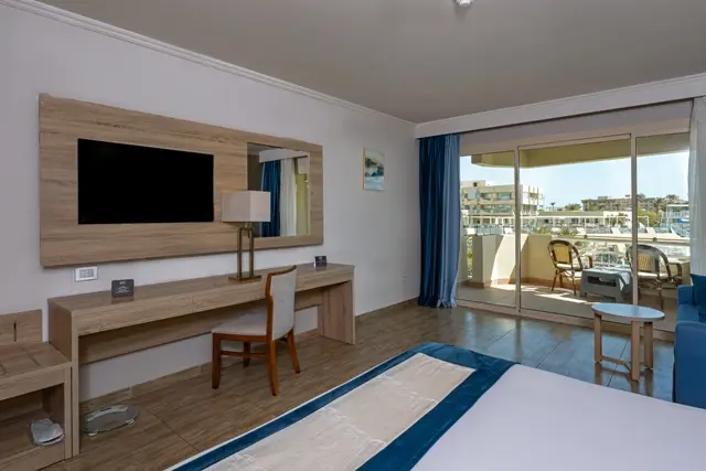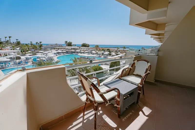 4 Junior suite (расположены на 2-4 этажах, 70-80 м2, балкон с видом на море / бассейн, двухкомнатный номер с 1 двуспальной кроватью и 1 односпальной кроватями в спальне, гостиная, доп. место - софа, макс. 2+2/3+2 чел.).