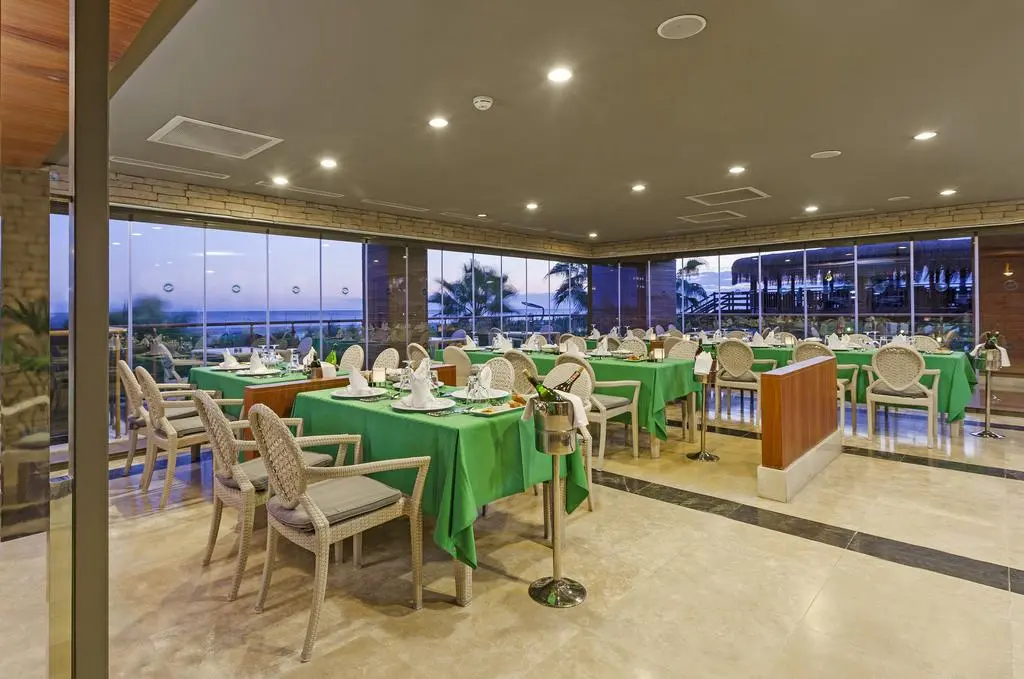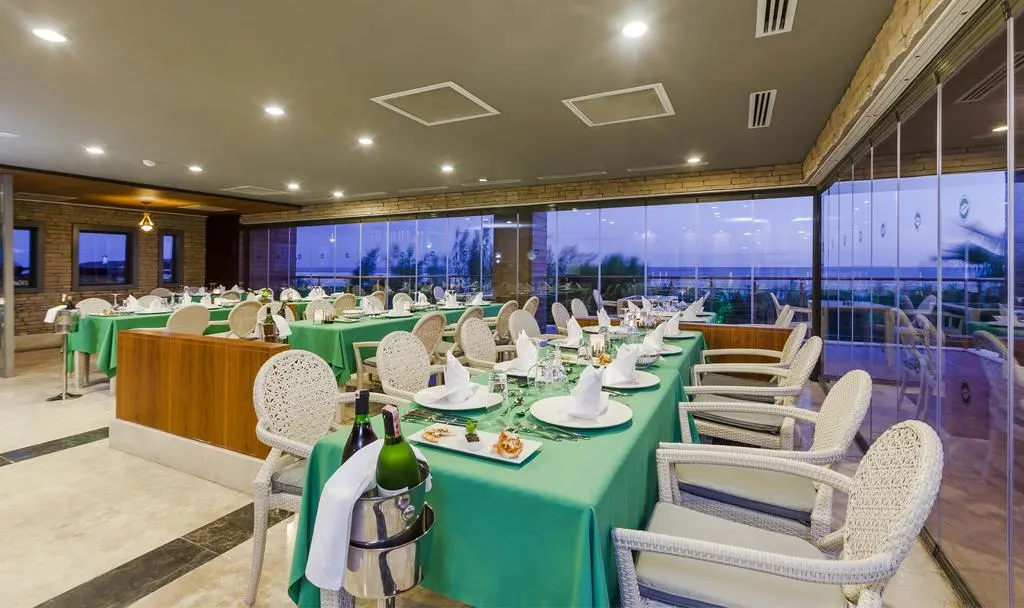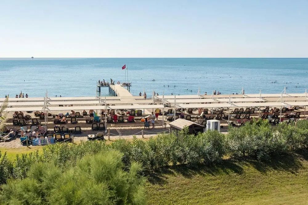 в 40 км от аэропорта, в 50 км от центра г. Анталья, в 9 км от поселка Серик, на берегу моря.
