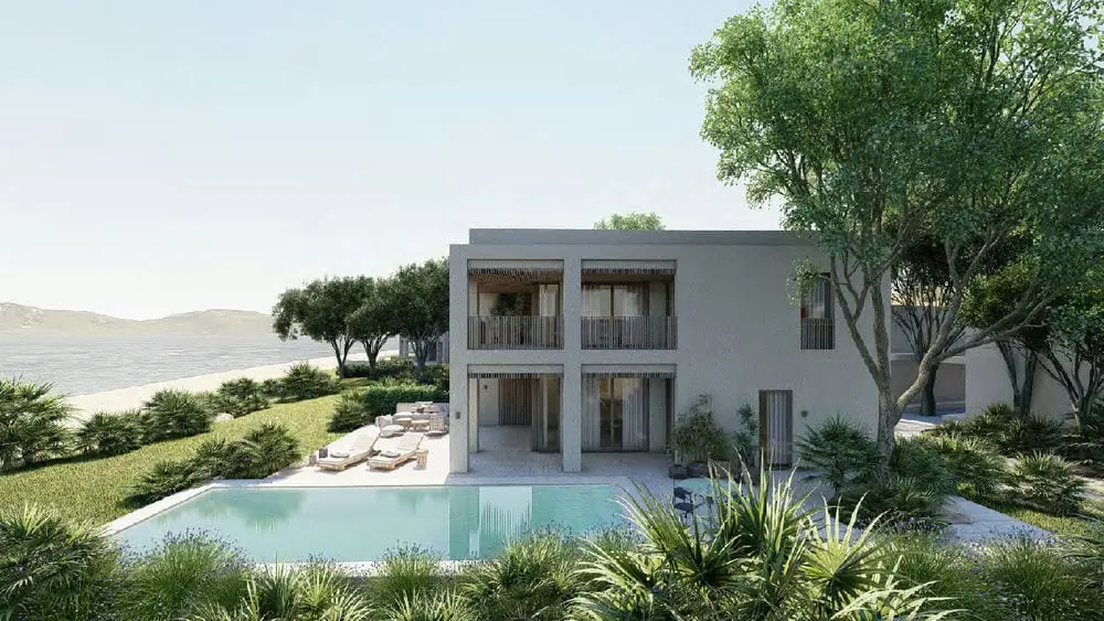 2 двухэтажные villa Вreezes и villa Dreams (1 гостиная, обеденный стол, кухня, 4 спальни, 4 ванные комнаты, из них одна с джакузи, индивидуальный бассейн, терраса для загарания, шатер на пляже, на VIP-пирсе, гамак и качели в саду, макс. 7 чел., 300 м2).\