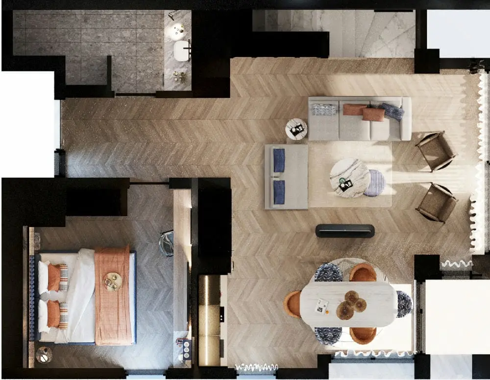 1 однокомнатный corner suite (макс. 2 чел., 40 м2);