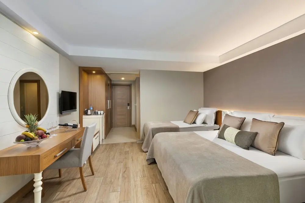 118 однокомнатных deluxe superior room (1 двуспальная, 1 односпальная кровать, 1 софа, ванная комната (душ), балкон; с видом на бассейн, макс. 3+1 чел., 38 м2);